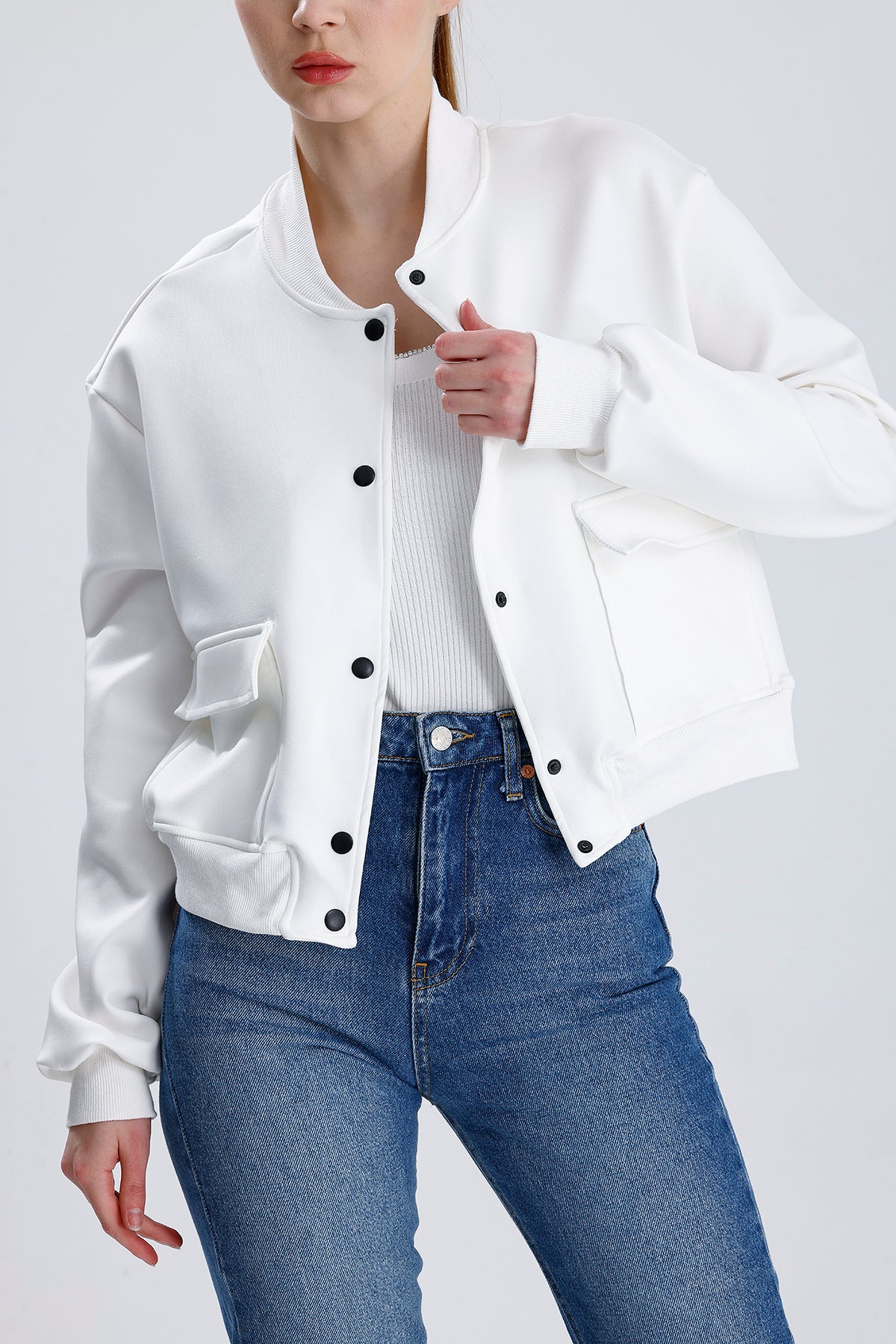 Dalgıç Kumaş Çift Cepli Bomber Ceket