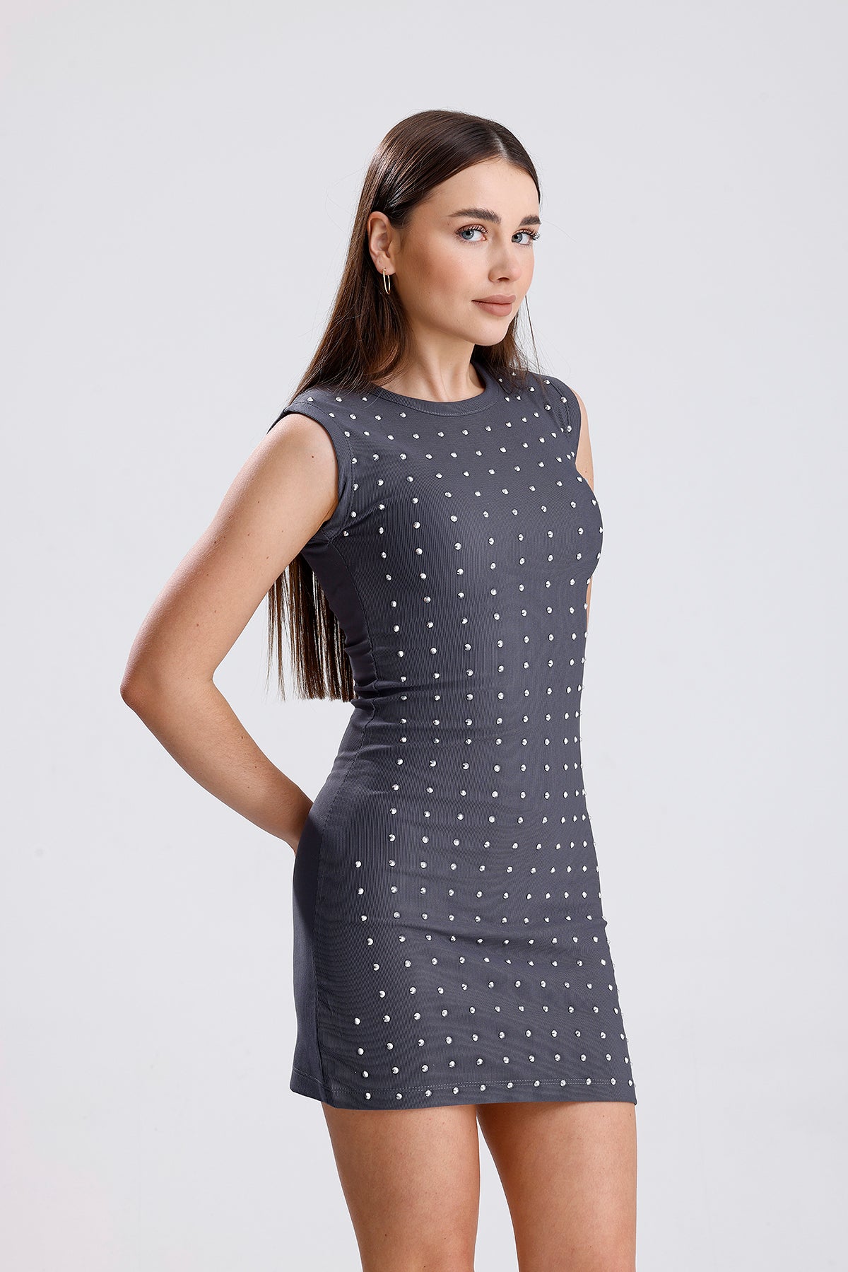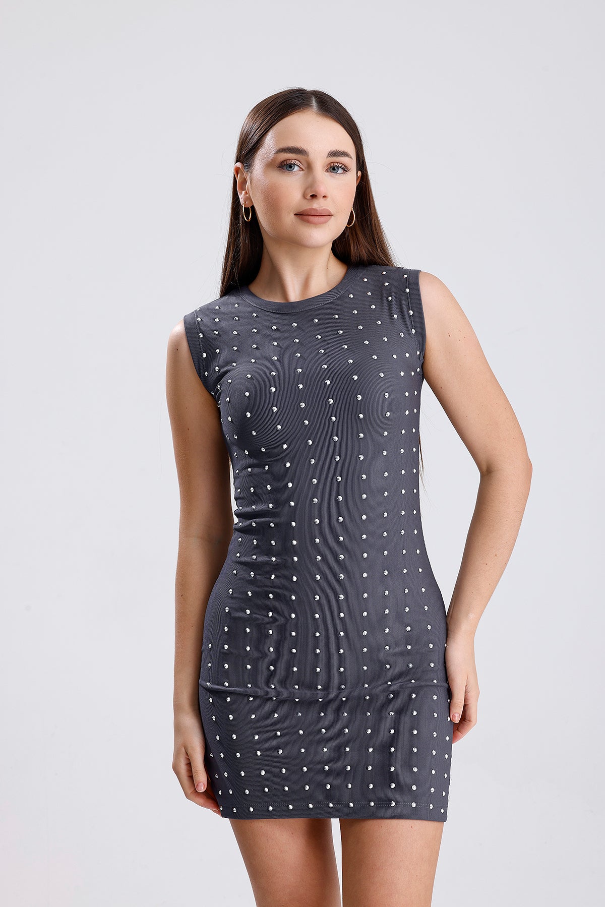 Kadın Taşlı Otttoman Kumaş Elbise
