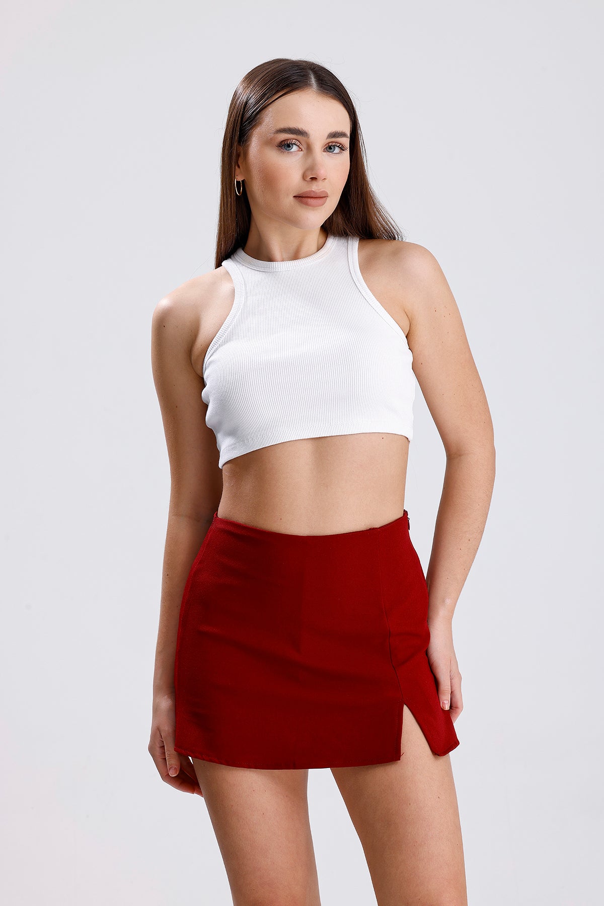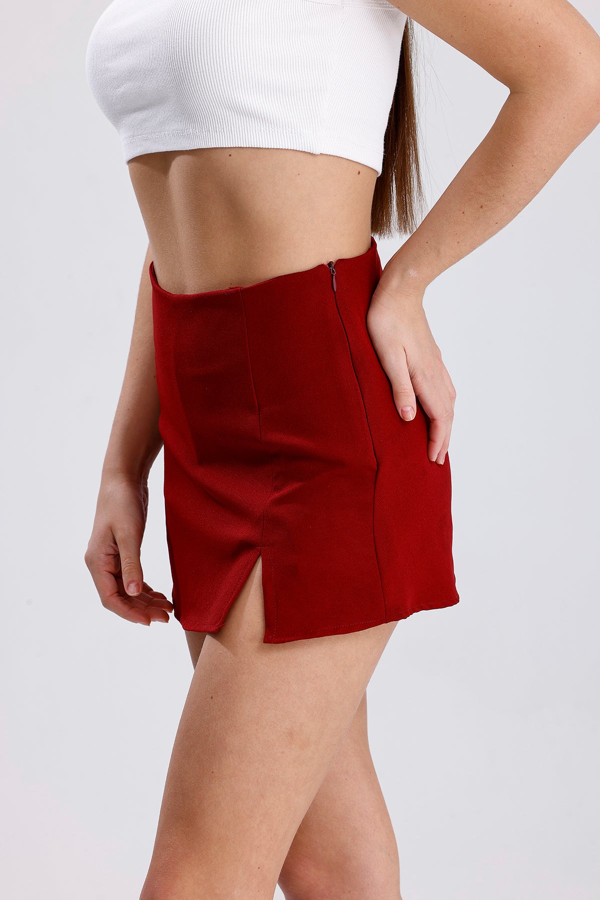 Mini Şort Etek Yandan Yırtmaçlı Arkası Etek Görünümlü